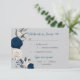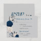 Gorgeous navy blue & white flowers with silver leaves on grey background with meal choice botanical RSVP card