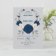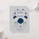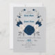 romantic navy blue and white flowers and grey leaves floral wreath wedding invitation