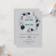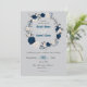 gorgeous navy blue and white flowers and grey leaves floral wreath wedding invitation