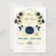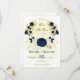 Romantic navy blue & white flowers with gold leaves botanical save the date invitation