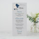 navy blue and white flowers with silver leaves wedding menu