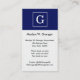 Navy Blue White Framed Initial Monogram Business Card