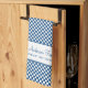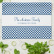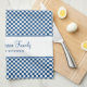 Personalised Elegant Navy Blue White Check Pattern Country Family Gourmet kitchen towel