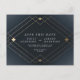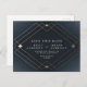Navy Blue & White Gold Deco Lines Save The Date Postcard