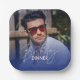 Navy Blue White Gradient Photo Birthday Dinner Paper Plate