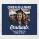 This modern navy blue and white custom senior graduate champagne bottle label features your high school or college senior photo for the class of 2025. Customise with your graduating year under the bold handwritten script and grad cap for a great personalised graduation photograph label for your party.