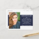 Personalised navy blue and white (editable colour) graduation "Save the Date" postcard.
