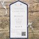AVAILABLE WITH OR WITHOUT A QR CODE TO SCAN IN THE RSVP AREA. This simple yet elegant design has a modern look, with a two-toned navy blue and white background. Add a QR code to your invitation so that gusts can quickly access your wedding Website for details, directions, menu options, and more, or add your gift registry Web URL. Personalised All-In-One invitations are a unique combination of both a beautifully printed custom invitation with an easy to tear off perforated RSVP postcard. And they are so easy to use! You simply fold, then seal the back flap with the three included clear stickers, and mail. And when your guests receive your custom invite, they just tear the perforated RSVP Card off and drop it back in the mail to you! Created by Simply Farmhouse Press.