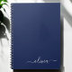 Navy Blue and White Simple Script Monogram Name Spiral Notebook Planner. This makes the perfect sweet 16 birthday, wedding, bridal shower, anniversary, baby shower or bachelorette party gift for someone that loves glam luxury and chic styles.