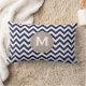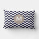 Navy Blue White Monogram Chevron Pattern Lumbar Cushion
