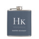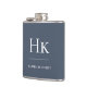 Navy Blue White Monogram Elegant Personalised Hip Flask