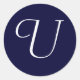 Navy Blue & White Monogram Initial Seals/Stickers. "U" MY ORIGINAL ARTWORK at zazzle.com/virginia5050*, BIRTHDAY GIFT STORE at zazzle.com/BirthdayGiftStore, and INTERNATIONAL GIFTS at zazzle.com/InternationalGifts*