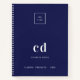 Navy blue white monogram initials business logo notebook