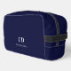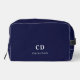 Navy blue white monogram initials name dopp kit