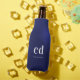 A navy blue background. The blue colour is uneven. Personalise and add a name and monogram initials. The name is written in white with modern block letters. For both him and her.