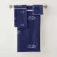 A classic navy blue background. Personalise and add your monogram letters, initials and name. White coloured letters. The name is written with a modern hand lettered style script. The monogram as a background pattern.