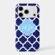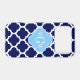 Navy Blue and White Moroccan Quatrefoil Trellis Pattern #5, Sky Blue Quatrefoil 3 Initial Monogram