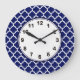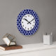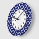 Navy Blue White Moroccan Quatrefoil Pattern #5 Large Clock