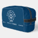 Personalise your toiletry bag with your name and the yacht name in white on a navy blue background.