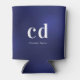 A navy blue background. The blue colour is uneven. Personalise and add a name and monogram initials. The name is written in white with modern block letters. For both him and her.