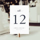 Simple and chic table number cards in classic black and white make an elegant statement at your wedding reception. Personalise with each table number, your names, and wedding date in rich navy blue lettering with calligraphy script accents. Design repeats on reverse side. Coordinates with our Ampersand Monogram wedding invitation suite.
