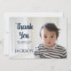 Cute navy blue and white polka dot kid's birthday party "Thank You" photo card.
