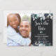 Chic, bohemian navy blue and white watercolor botanical rose floral, wedding save the date photo magnetic invitations. This modern wedding design feature navy, light blue and white floral arrangements, feathers on black colour background. Feature a hand lettered typography design with text „Save the Date” and one (1) vertical photo. Great choise for rustic and bohemian fall and winter weddings or any season. Easy to personalise it. #3353 If you need help or matching items, please contact me.