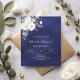 Navy blue white roses birthday invitation