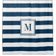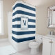 Navy Blue White Rugby Stripes Monogram Bathroom Shower Curtain