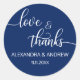 Navy Blue White Script Wedding Love & Thanks Classic Round Sticker