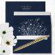This navy blue and white wildflower floral is elegant and simple. Your guests will smile at the splash of flowers that accentuates the invitation or save the date card inside