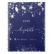 A navy blue background decorated with white stars. Personalise and add your name. The name is written with a modern hand lettered style script with swashes.