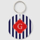 Navy Blue White Stripe Red Quatrefoil Monogram Key Ring