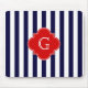 Navy Blue White Stripe Red Quatrefoil Monogram Mouse Pad