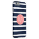 Navy Blue & White Stripe with Coral Monogram Case-Mate iPhone Case