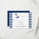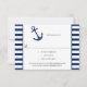 Navy Blue White Stripes Anchor Nautical Theme RSVP Card