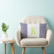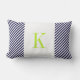 Navy Blue White Stripes Lime Green Monogram Lumbar Cushion