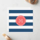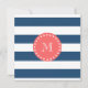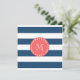 Navy Blue White Stripes Pattern, Coral Monogram Card
