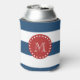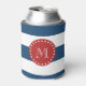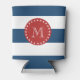 Navy Blue White Stripes Pattern, Red Monogram Can Cooler