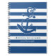 Navy Blue & White Stripes Pattern With Anchor Notebook
