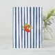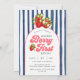 Navy Blue White Stripes Strawberry 1st Birthday Invitation
