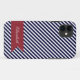 Navy Blue & White Stripes w Monogram iPhone 5 Case
