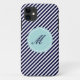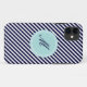 Navy Blue & White Stripes w Monogram iPhone 5 Case