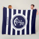 Navy Blue & White Stripes With Nautical Anchor Fleece Blanket