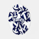 This volleyball themed ornament is printed on the front and back with the image of a cluster of varied size navy blue and white volleyballs - customise with the athlete's name on the front and commemorative year on the back - by katz_d_zynes