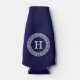 Navy Blue Wht Greek Key Rnd Frame Initial Monogram Bottle Cooler