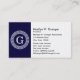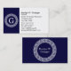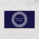 Navy Blue Wht Greek Key Rnd Frame Initial Monogram Business Card