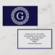 Navy Blue Wht Greek Key Rnd Frame Initial Monogram Business Card