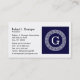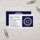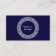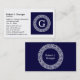 Navy Blue Wht Greek Key Rnd Frame Initial Monogram Business Card