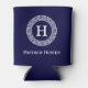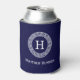 Navy Blue Wht Greek Key Rnd Frame Initial Monogram Can Cooler
